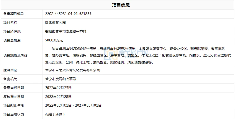 近日,小房君从相关平台了解到,南溪体育公园正式备案通过,占地约75.5亩,总投资5000万,具体内容如下: