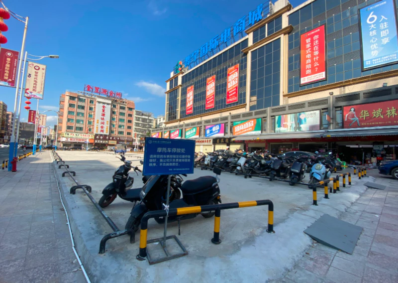 普宁国际电商城从满足商户需求出发,不断完善相关产业配套,在原有中心广场、5000个地下停车位的配套基础上,升级改造西广场整体形象并设立摩托车停车区,方便商户日常经营的上下货物及车辆进出。