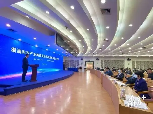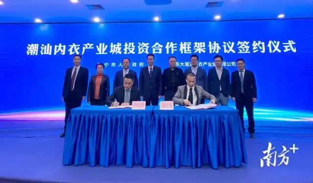 2022年3月11日,普宁市举行潮汕内衣产业城投资合作框架协议签约仪式,携手广东大潮汕内衣产业城有限公司全力做大做强纺织服装产业集群。广东大潮汕内衣产业城公司拟在普宁市打造内衣产业城项目,以内衣产业为核心,以数字化为动力,构建产城融合的新型产业生态圈,建设全球内衣产业链总部与潮汕文旅融合发展基地,全力推动产业城发展成为全球内衣供应链枢纽、中国内衣研发设计中心、华南内衣产业智能智造试验基地和粤东传统产业数字化升级示范基地。