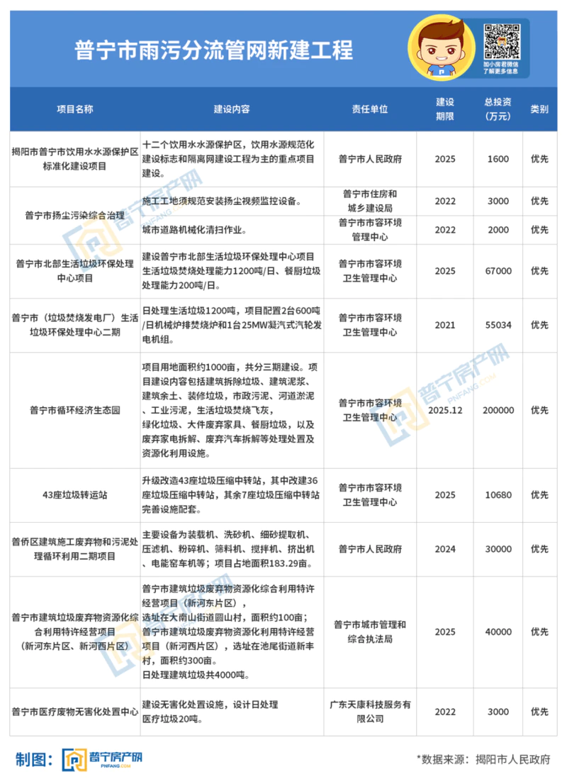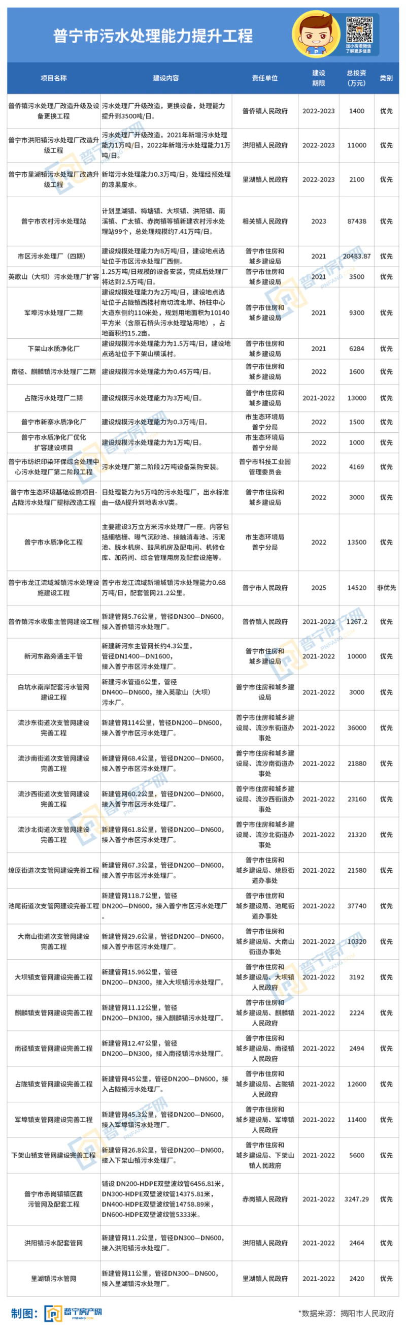 近日,揭阳市人民政府印发了揭阳市生态环境保护“十四五”规划的通知,据小房君了解,“十四五”时期生态环境保护工作中涉及普宁多项水环境保护重点工程,包括污水处理设施、污水管网建设、雨污分流管网建设、水环境综合整治等,具体内容如下: