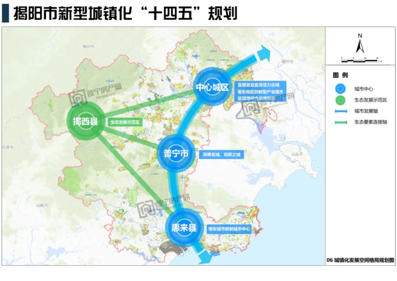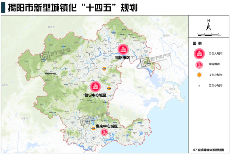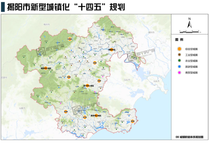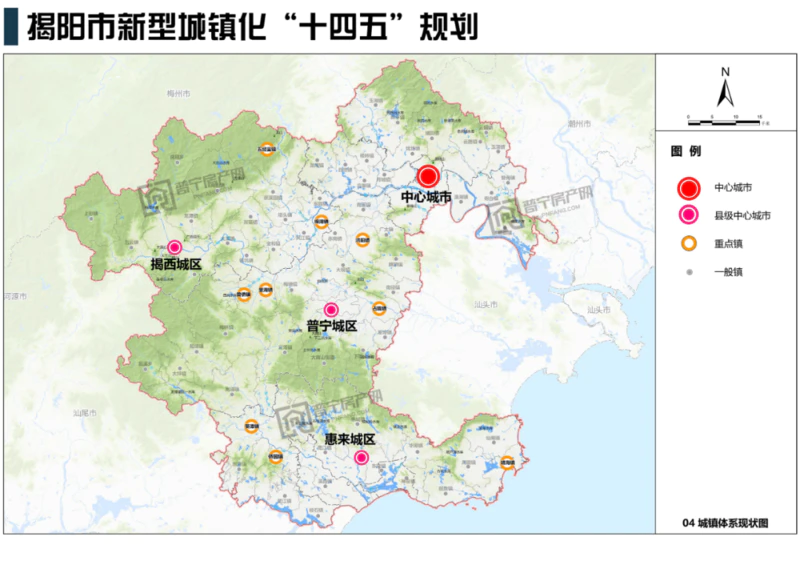 综合性城镇4座:普宁中心城区、占陇镇、里湖镇、洪阳镇