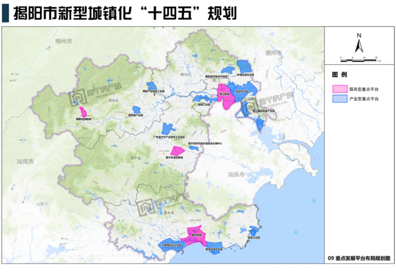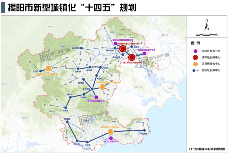 规划3处区县级公共服务中心,分别是揭阳市粤东新城、普宁东部创新城、揭西北部新城,满足辖区内及周边地区公共服务需求。