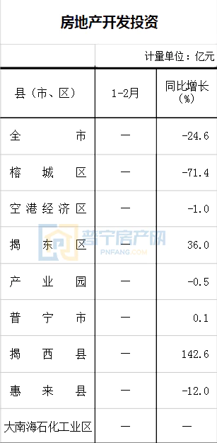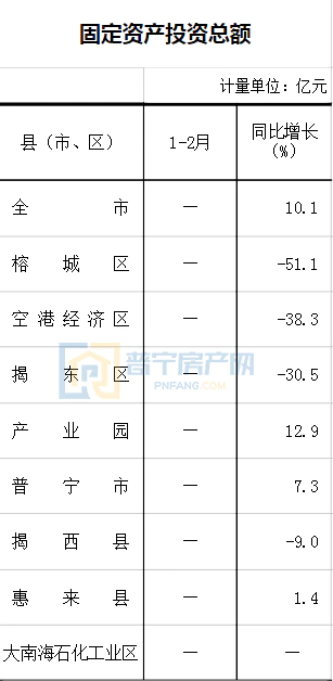 1-2月,全市固定资产投资增长7.3%,增幅同比回落88.9个百分点。其中,项目投资增长11.7%,房地产开发投资增长0.1%。