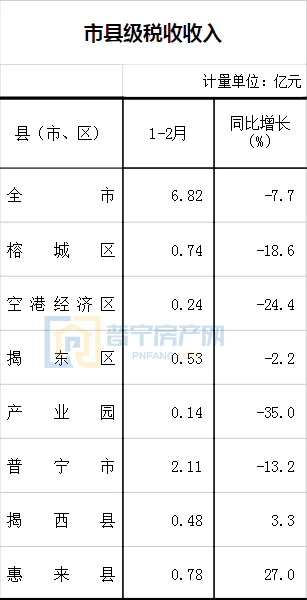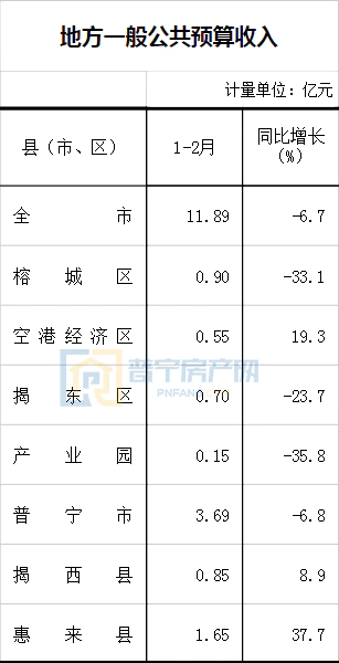 1-2月,全市实现地方一般公共预算收入3.69亿元,下降6.8%。其中:税收收入2.11亿元,下降13.2%。全市实现地方一般公共预算支出19.62亿元,增长0.1%。全市金融机构本外币各项存款余额973.17亿元,比年初增长2.0%;金融机构本外币各项贷款余额447.62亿元,比年初增长0.3%。存贷比为46.0%。