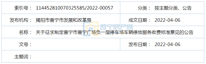 关于征求制定普宁市普宁广场负一层停车场车辆停放服务收费标准意见的公告