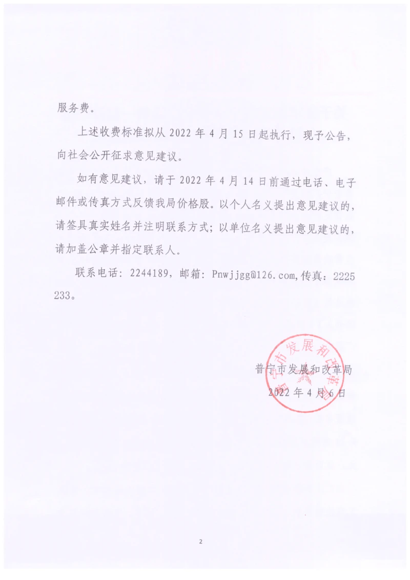 上述收费标准拟从2022年4月15日起执行,现予公告,向社会公开征求意见建议。