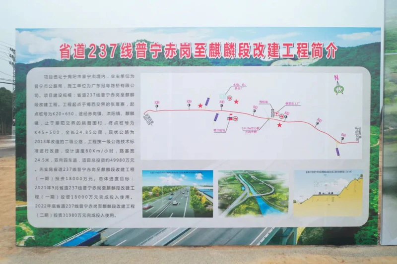 2020年11月,省道S237线普宁赤岗至麒麟段改建工程举行开工仪式。