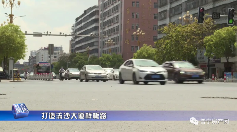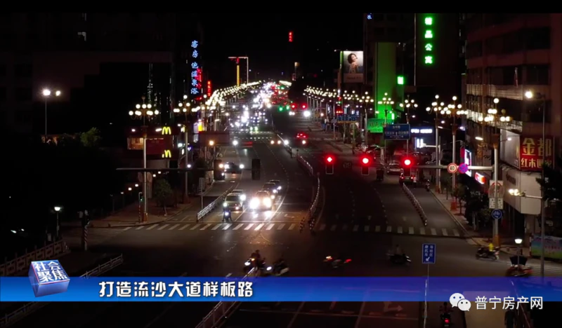 商贾名城,美好普宁。经过多方努力,流沙大道旧貌换新颜,整条路面进行全面升级改造之后,路中再也没有龙门架广告牌了,原来四车道改为六车道,原来为机动车道及绿化带总宽6.5米改为车行道3.75米和自行车道2.75米,变得宽广多了,路面及两侧及交叉路口各种硬件配套设施更加完善美观,城市绿化、美化、亮化、净化更加到位细致,成为耳目一新的靓丽风景线,受到广大民众好评。