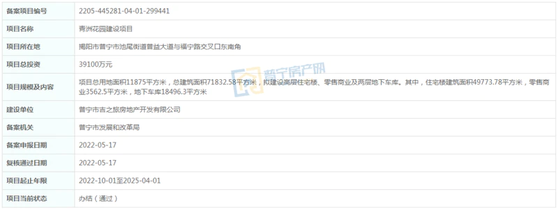 据小房君了解,2021年1月,普宁市池尾青洲家具厂旧厂房片区改造单元规划进行规划(草案)对外公示,该项目规划区域总面积32.9亩,将促进城市业态转换,完善城市功能,改善人居环境,推动城市扩容提质。2021年4月,普宁市池尾青洲家具厂“三旧”改造单元通过评审。2021年7月,《普宁市池尾青洲家具厂三旧改造单元规划》获市政府批复。