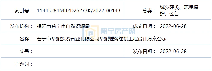普宁市华骏投资置业有限公司华骏雅苑建设工程设计方案公示