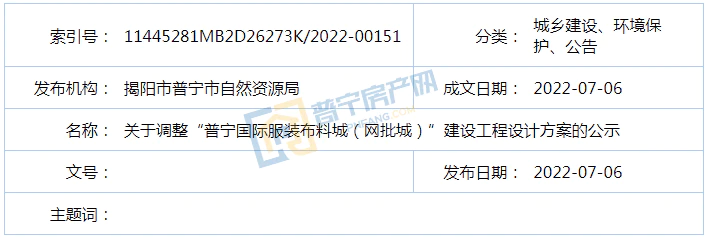 关于调整“普宁国际服装布料城(网批城)”建设工程设计方案的公示