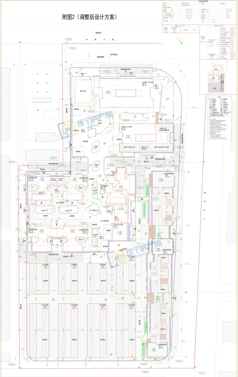 为提高建筑空间使用的舒适性、实用性,在未超出该宗用地的规划设计条件(宗地规划设计条件为:容积率≤4.0,建筑密度≤45%,绿地率≥20%,建筑高度≤80米)的前提下,建设单位申请对原设计方案进行调整,主要调整方向为公寓及LOFT公寓层数分别由原方案的27、18层降为25、16层,标准层层高分别由原来的2.8、4.3米调整为3.0、4.8米,LOFT公寓在4.8米层高范围内设置部分夹层(该夹层按规定计算容积率和建筑面积)。调整后设计方案(见附图2)为:11幢3层商铺、2幢16层LOFT公寓、3幢25公寓、2层地下室,总建筑面积为217244.22 平方米,比原设计方案增加6929.07平方米,计容建筑面积175636.94平方米,比原设计方案增加6538.02平方米,容积率3.0,比原来设计方案增加0.11。调整后的各项经济技术指标均未超出该宗用地的规划设计条件。