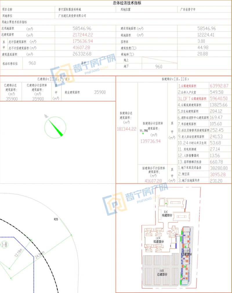 普宁国际服装布料城(网批城)位于环市北路南侧、广达北路西侧,项目原已批准设计方案(见附图1)为:11幢3层商铺、2幢18层LOFT公寓、3幢27公寓、2层地下室,总建筑面积210315.15平方米,计容建筑面积169098.92平方米,容积率2.89(其中11幢3层商铺已办理建设工程规划许可证并通过建设工程竣工规划核实)。