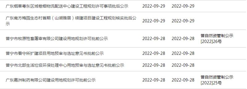 广东烟草粤东区域卷烟物流配送中心建设工程规划许可事项批后公示