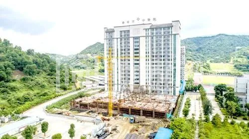 (普宁市新中医医院二期工程正在加紧建设。郑楚藩 摄)