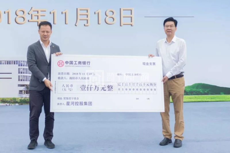 开工仪式上还举行了奖教奖学基金捐赠仪式,星河控股集团分别向揭阳市政府和普宁市政府捐赠奖教奖学基金1000万元和100万元。星河一直致力于推动区域繁荣与城市化发展,在“诚信、创新、责任、共赢”企业文化的熏染之下,坚持履行社会责任,饮水思源回馈社会,并先后荣获“最具爱心房企”、“鹏城慈善企业”、“2017年度责任品牌企业”等称号。