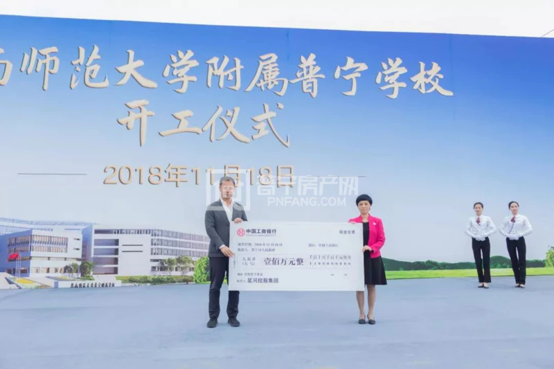2018年11月18日上午,华南师范大学附属普宁学校开工仪式在星河明珠湾隆重举行。华南师范大学党委书记朱孔军,揭阳市委常委、普宁市委书记张时义,揭阳市委常委、常务副市长陈定雄,普宁市委副书记、市长林钢捷,星河控股集团副董事长、总裁姚惠琼等出席仪式,普宁市有关单位、星河控股集团、华南师范大学有关领导代表,以及普宁地产等开工企业领导、职工代表,多家主流新闻媒体记者济济一堂,共襄盛举。
