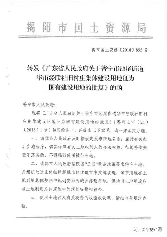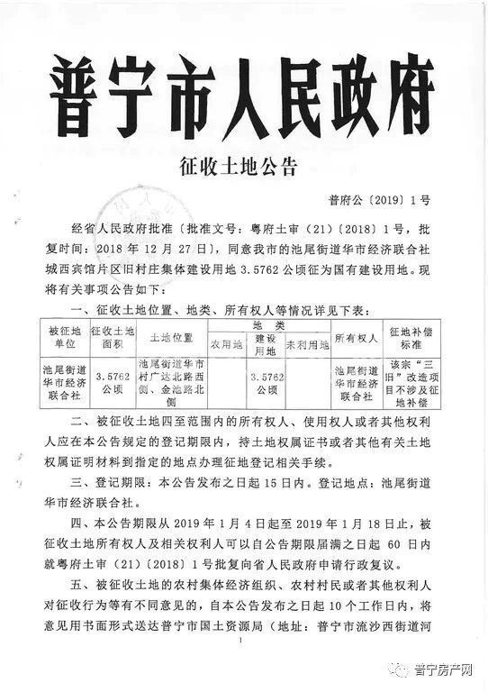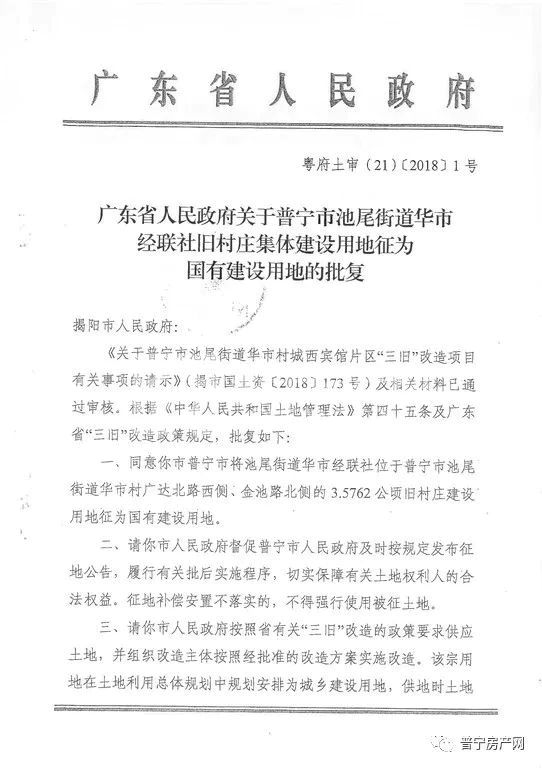 近日,小编也从普宁市国土资源局了解到,经省人民政府批准,同意我市的池尾(楼盘详情户型图相册地图)街道华市经济联合社城西宾馆片区旧村庄集体建设用地3.5762公顷征为国有建设用地,具体公告如下: