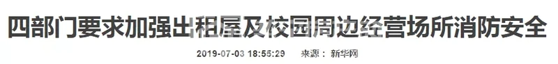 7月1日,应急管理部、教育部、公安部、住房和城乡建设部等四部委联合下发通知,就切实加强出租屋及校园周边经营场所消防安全管理工作提出要求。