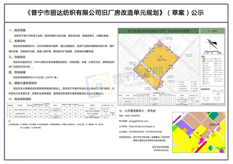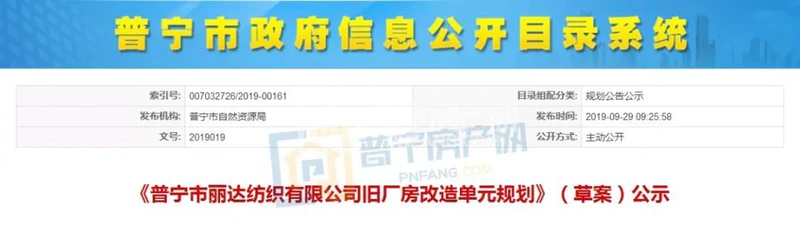 近日,小编从普宁市自然资源局获悉,《普宁市丽达纺织有限公司旧厂房改造单元规划》(草案)正在公示。