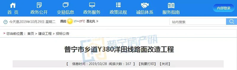 普宁市交通运输局关于普宁市乡道Y380洋田线路面