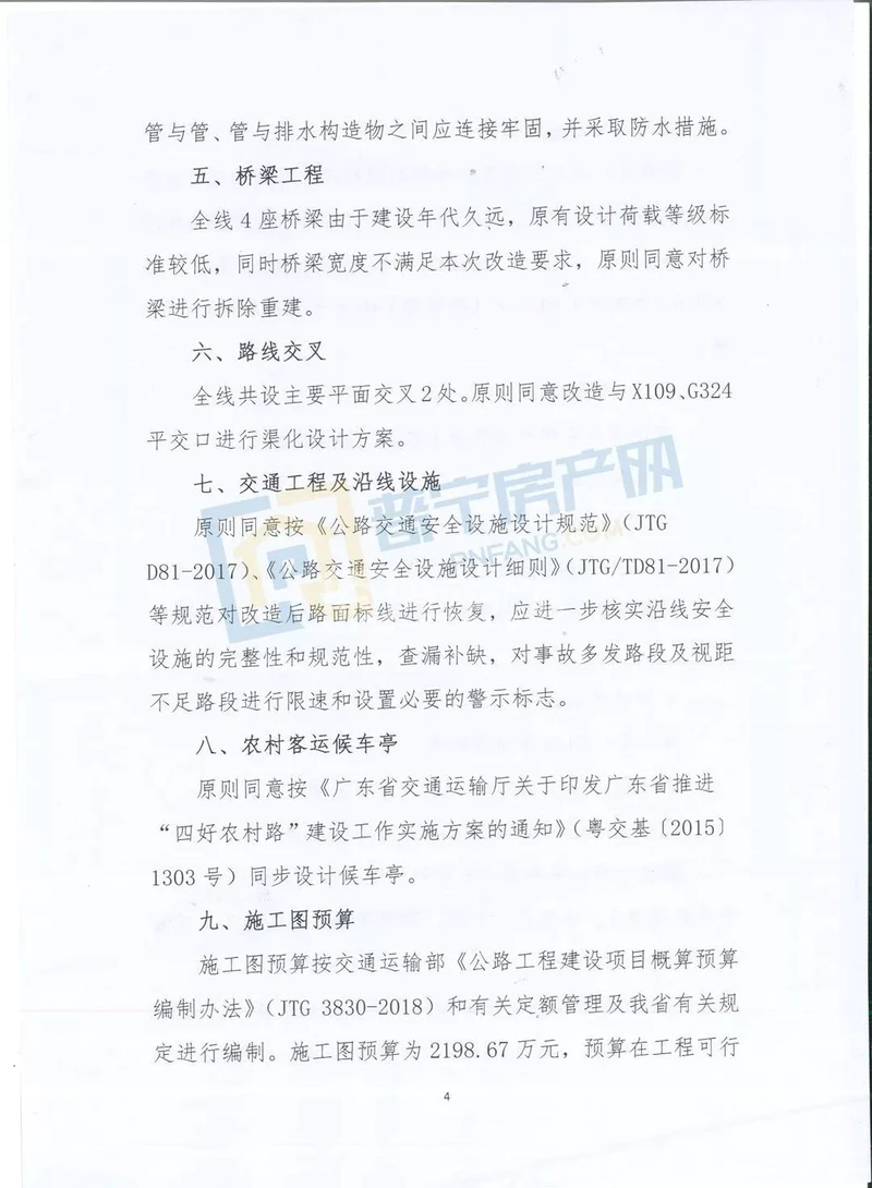 原则同意按《广东省交通运输厅关于印发广东省推进“四好农村路”建设工作实施方案的通知》(粤交基(2015)1303号)同步设计候车亭。