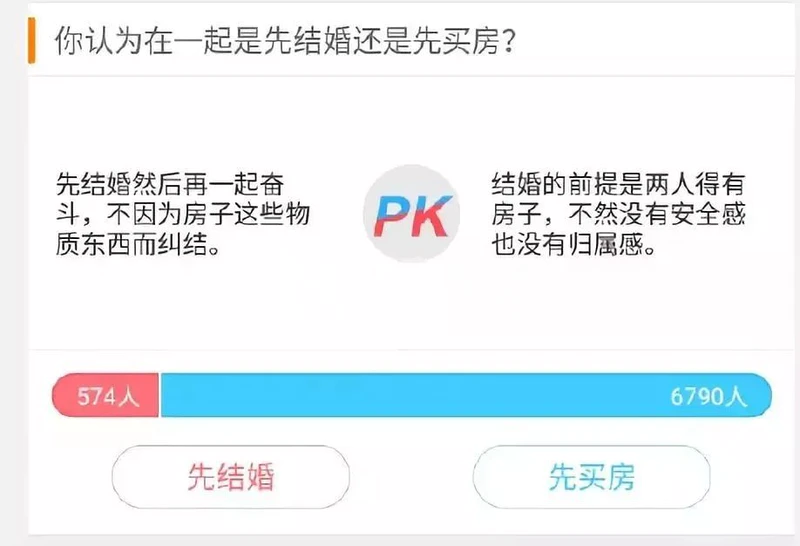 此前,微博上曾经发起过一个热门话题,“先结婚还是先买房”,可以看到超90%的网友是选择了“先买房”