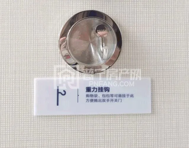 保利精妆房入门处设置有重力挂钩,当提着东西找钥匙开门时,手中的东西可直接挂在承重钩上,归家卸下负重,出入安全方便。
