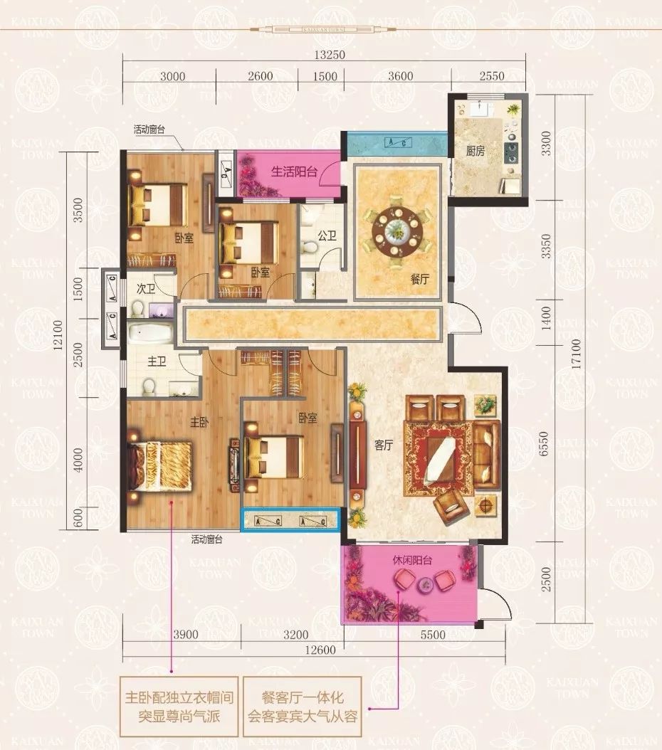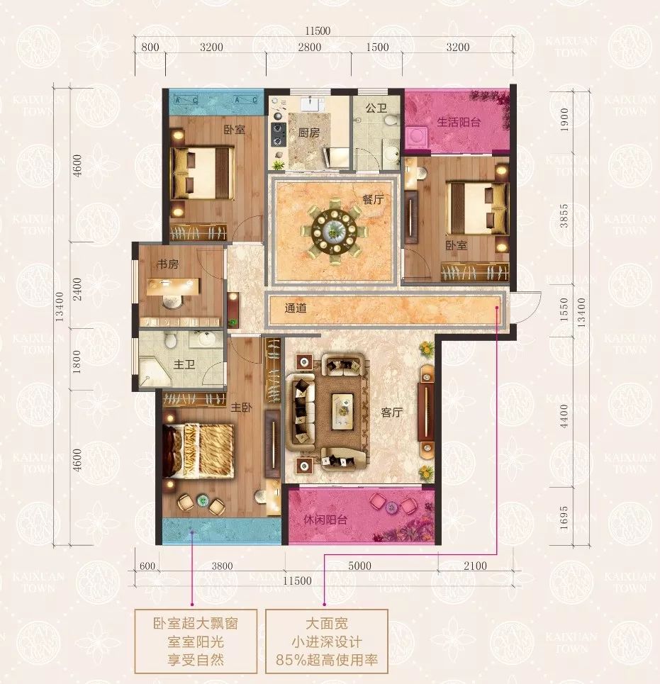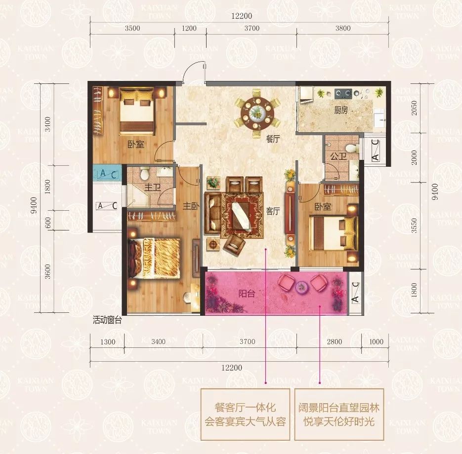 主卧带主套,奢享尊贵与私密,餐客厅一体化