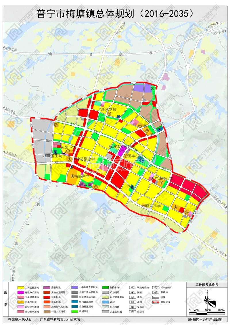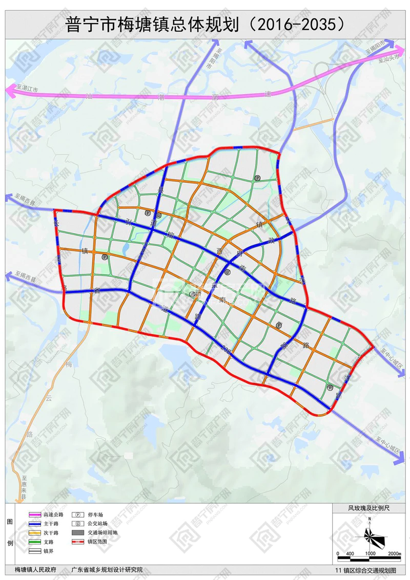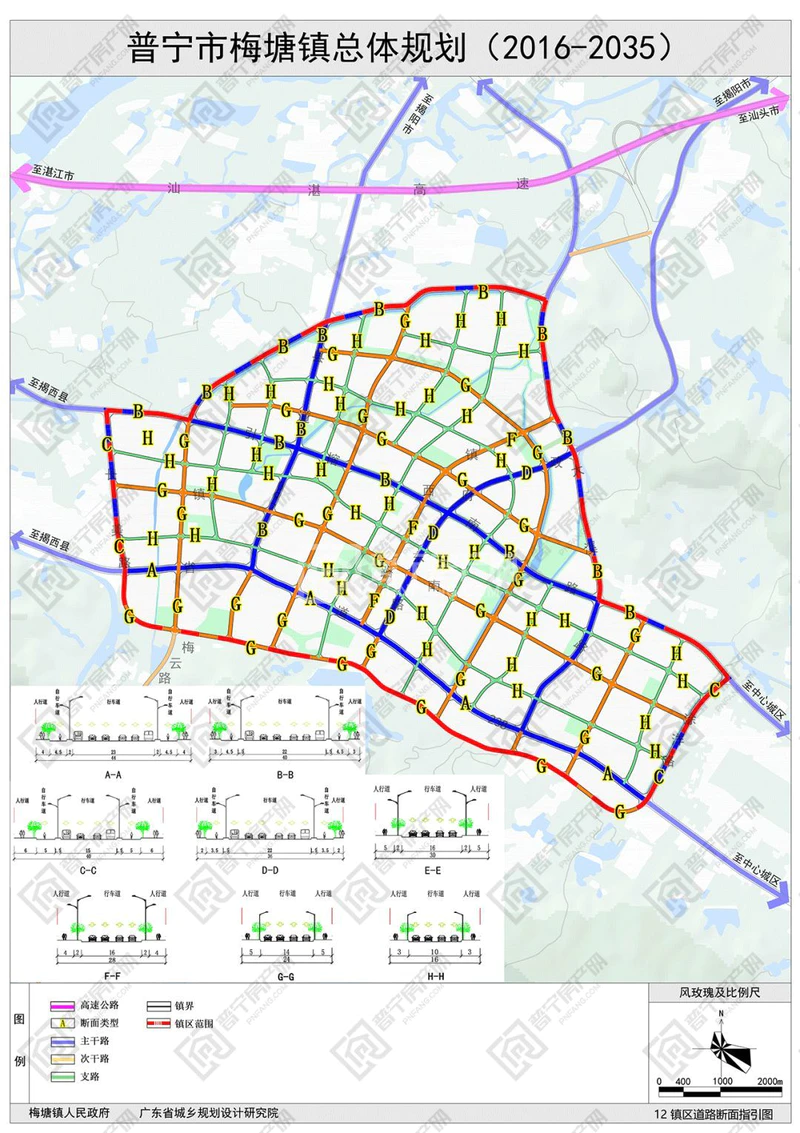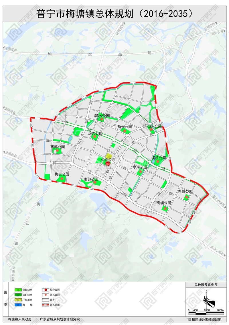 一、规划范围与期限 1、本规划范围分为镇域(规划区)、镇区两个层次。 (1)镇域范围(即规划区):为梅塘镇行政边界,75.58平方公里,包括23个行政村和1个社区居委会; (2)中心镇区范围:西至规划长美路,东至规划涂洋路,北至引榕溪,南至水磨坑下水库,共7.4平方公里。 2、规划期限为2016-2035年。其中:近期为2016-2020年,远期为2021-2035年。 二、发展目标与战略 1、总体目标:依托良好的生态资源,结合新进的对外交通优势,通过升级做大做强主导产业、逐步提升镇区职能、稳步推进城乡统筹,将梅塘镇建设成为新型工业城镇以及普宁西部的交通中转站。 2、城镇性质:普宁市西部重要城镇,以塑料、食品、服装纺织等为主导的新型工业城镇。 3、城镇发展规模: (1)规划梅塘镇镇域近期2020年常住人口为15.6万人,城镇化率为30%;远期2035年常住总人口为18.6万人,城镇化率为60%; (2)规划梅塘镇镇区近期2020年常住人口为4.5万人,城镇建设用地规模为187公顷;远期2035年常住人口为6.6万人,城镇建设用地规模为648.16公顷,人均98㎡。 4、发展战略: (1)区域统筹,加强同里湖镇、大坝镇以及中心城区在产业、交通、生态等方面的合作协调,实现区域共同发展,提升普宁市西部地区的整体发展水平。 (2)产业发展,以市场需求为导向,加快调整农业结构、提高农产品质量安全水平,构建展销一体化平台,扩大市场范围,拓展农民增收空间。同时加强中低产田改造,加快农业科技进步,强化生态环境保护和资源要素节约利用,提高农业综合生产能力; 加速服装等支柱产业的聚集,通过构建产业园来实现工业的集约化、规模化、高效化发展。同时发展金融商贸、科技研发、工业设计、技术服务、专业培训以及会展等现代服务业。第二产业和第三产业的融合,为新一轮的产业升级创造良好基础。 (3)城乡统筹,优化城市空间。构建镇服务集聚中心,提升服务水平和规模,强化镇区作为镇域中心的地位,加强基础设施和服务配套设施的建设,带动城市空间的优化升级。 三、镇村体系规划 1、产业发展布局:规划形成“城镇综合服务区”、“休闲农业观光区”、“自然山水保育区”、“特色民宿服务区” 、“风景名胜观光区”的镇域五片区特色产业格局。 2、镇村等级结构:规划形成中心镇区、中心村、基层村的三级结构,其中中心村包括长美村、涂洋村、溪南村、安仁村。 3、镇域道路交通规划:镇域内形成“三横一纵“的主干路网格局,加强梅塘镇与普宁中心城区以及周边城镇联系。“三横”为原省道238、引榕南路和汕湛高速路;“一纵”为县道097。 1、空间结构:镇区用地布局结构为“两心、三轴、五组团”。 两心:综合服务主中心。作为全镇的行政、商业、文化、餐饮、娱乐、体育、卫生等公共设施服务中心。综合服务次中心。为县道097与省道238交汇处的综合服务中心,在原基础上增加文化、娱乐、购物等公共服务设施。 三轴:城镇发展主轴。指沿着省道238两侧形成城市综合发展链,连接两个综合服务核心。城镇发展次轴。指一条沿县道097两侧和一条沿着政府东路两侧形成城市综合发展次链。 五组团:城镇综合服务组团、电子商务商贸组团、老城综合提升组团、现代生态宜居组团及特色产业发展组团。 2、用地布局:规划期末安排城镇建设用地648.16公顷,人均建设用地约98平方米。其中居住用地24.10公顷,公共管理与公共服务设施用地41.45公顷,商业服务业设施用地82.97公顷,道路与交通设施用地146.28公顷,公用设施用地4.26公顷,工业用地53.02公顷,物流仓储用地6.34公顷,绿地与广场用地64.74公顷。 1、行政办公设施规划:规划行政办公设施用地2.85公顷,规划保持行政办公设施集聚在政府东路与引榕南路交界处。 2、文化设施布局:规划文化设施用地4.07公顷,规划设置1处文化活动中心、1处少年宫和2处文化馆三类文化设施。 3、教育设施布局:规划教育科研用地24.43公顷,其中: (1)高中:规划保留现状梅峰中学。 (2)初中:规划保留现状梅峰初级中学中学,新增两处中学。 (3)小学:规划保留现状远光小学、田丰小学、双湖小学、新光学校、大宅华侨小学,新增四处小学。 4、体育设施布局:规划体育设施用地3.02公顷。 5、医疗卫生设施布局:规划医疗卫生用地2.44公顷,规划保留梅塘卫生院1处,面积为0.51公顷;新增4处社区卫生站,用地面积约1.93公顷。 6、社会福利设施布局:规划社会福利设施用地1.97公顷。新增四处敬老院。 7、文物古迹用地设施布局:规划保留文物古迹用地规模0.41公顷,包括梅峰庵。 8、宗教用地设施布局:规划保留宗教用地规模2.26公顷。 1、规划期限:近期规划年限为2016-2020年。 2、规划规模:至2020年,镇区常住人口规模约为4.5万人,全镇城镇化水平约为50%。城市建设用地规模为1.87平方公里。 3、近期建设内容: (1)新型产业园区的建设。将梅塘镇分散独立的产业集聚起来,从而更好的带动整个镇域经济的发展。 (2)重点打造政府东路东侧高品质居住片区,配套相关服务设施,改善片区形象,打造镇区中心门户。 (3)对县道097沿线商业进行升级和改造,在省道238及县道097交界处打造一处大型商业中心,在镇区综合服务中心打造商业群,带动梅塘镇发展。 (4)重点道路的升级和新建。近期重点建设的道路包括2条主干路:将县道097升级改造为双向六车道,新建连接里湖镇和中心城区的引榕南路。 1、本规划一经批准,由