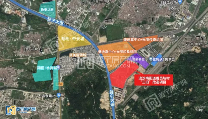 项目总占地面积约225亩,为上世纪70年代普宁县政府统征国有建设用地,首期改造范围东至安东街、西至新光南路、南至“豪门夜酒店”南侧道路、北至立新路,改造后作为二类居住用地兼容零售商业用地。