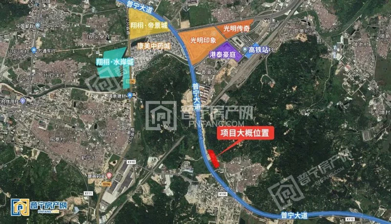 翔景花园由普宁市翔泰地产有限公司开发建设,项目位于下架山镇水供塘村(普宁大道东侧),用地面积为20386平方米(30.58亩),将建设六栋高层住宅楼及一栋社区服务中心配套设置养老服务中心,计划总户数570户,还将设置两层地下室车库,停车位759辆,总建筑面积117866.7平方米。位于下架山镇水供塘村(普宁大道南侧)地块,均被普宁市松雁实业投资有限公司分别以19100万和1980万拍下,北面正好是普宁高铁站,交通便利。普宁大道是普宁的大动脉,对接市区各主要干道,始于国道324线(普惠高速池尾出入口),最终在汕头市潮南区陈店镇与陈沙公路相接。沿途普宁市第二中学、普宁市中医院、康美普宁中药城、普宁高铁站等重大配套项目。相信未来会有更好的发展。