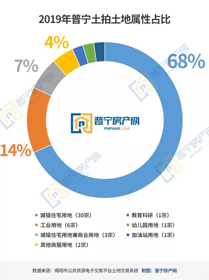 2019年挂牌土地中,城镇住宅用地30宗,工业用地6宗,城镇住宅用地兼商业用地3宗,其他商服用地2宗,其他土地属性各1宗。