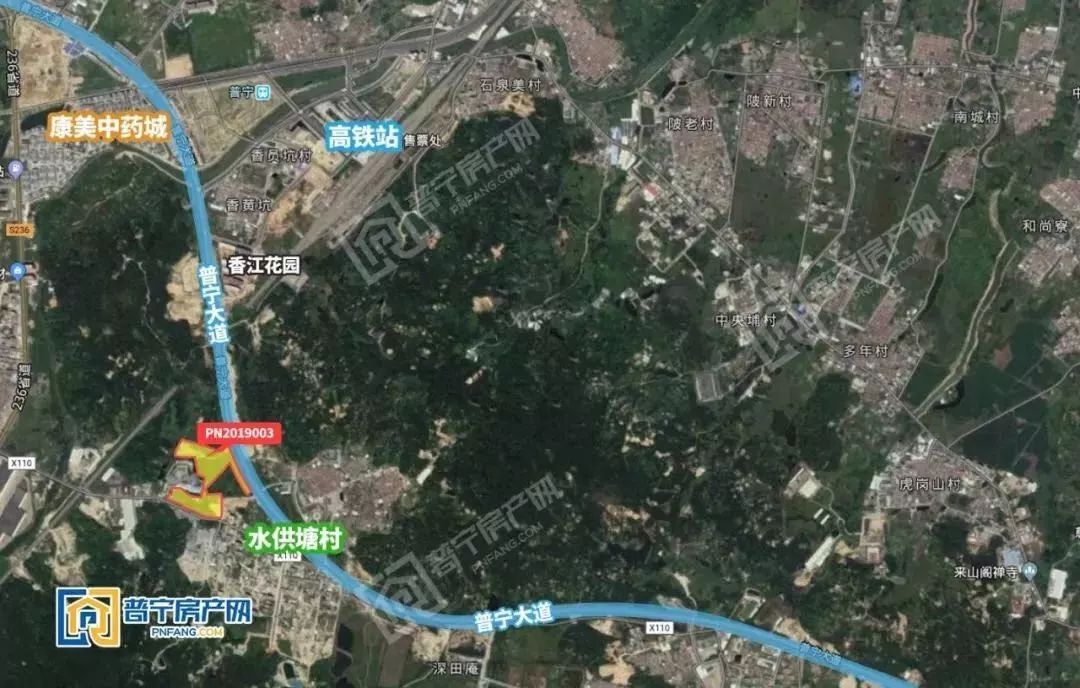 2019年度最吸金地块——编号PN2019003(流沙南香员坑村、下架山镇水供塘村),该地块为2019年首宗住宅用地,由普宁市松雁实业投资有限公司以1.91亿元竞得,面积约57亩,地处普宁大道南侧,北面则是普宁高铁站,交通便利,周边楼盘集中,未来发展前景广阔。