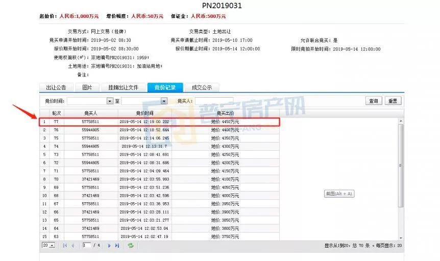 PN2019031地块竞拍记录▲