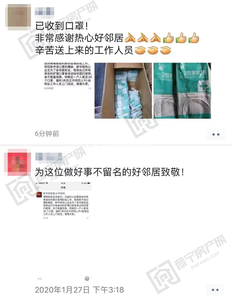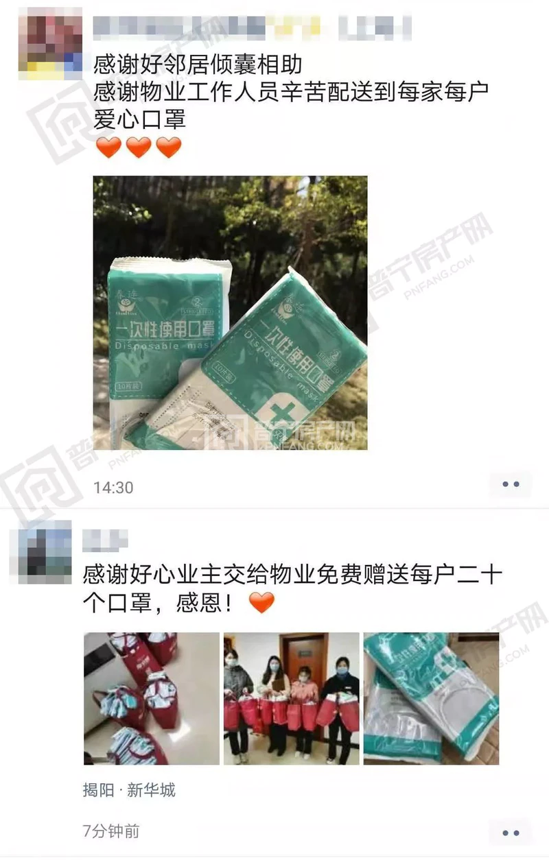 感谢好邻居倾囊相助,感谢物业工作人员辛苦配送到每家每户爱心口罩。