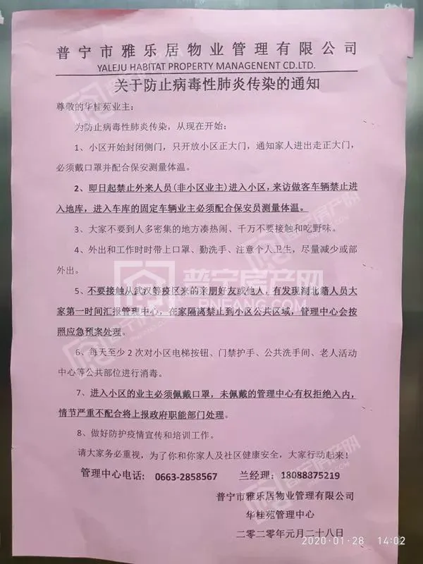 作为防控第一线,普宁已有多个小区火速加入到疫情防控行动中,有的封闭了部分出入口,有的实行封闭式管理,严格管控外来人员等等,各种防疫措施,一定程度上反映了小区物业的服务及管理水平。