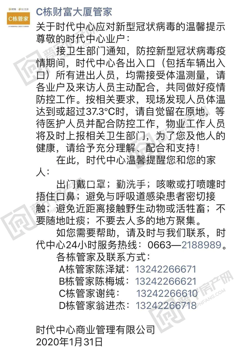 除此之外,时代中心各出入口(包括车辆出入口)所有进出人员均需接受体温测量。