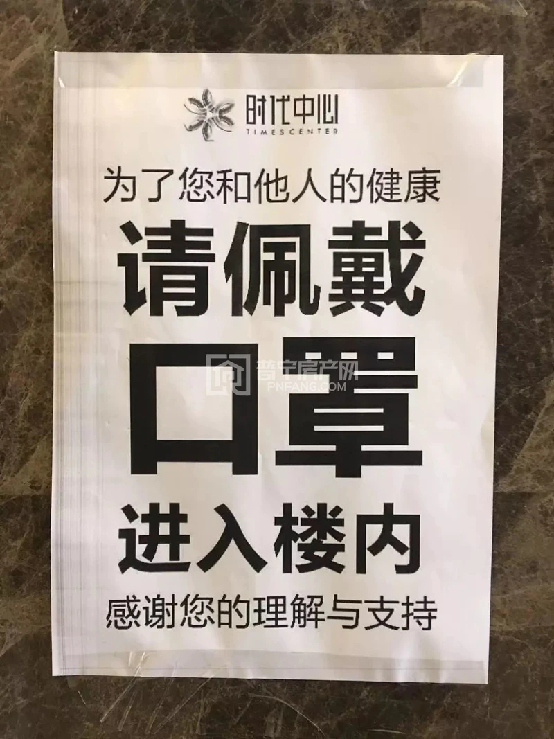 在财富大厦出入口明显位置还张贴佩戴口罩的温馨提示。