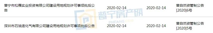 而在今年1月份,普宁市自然资源局发布了普宁市松雁实业投资有限公司以及深圳市石油液化气有限公司建设用地规划许可公示,具体如下所示: