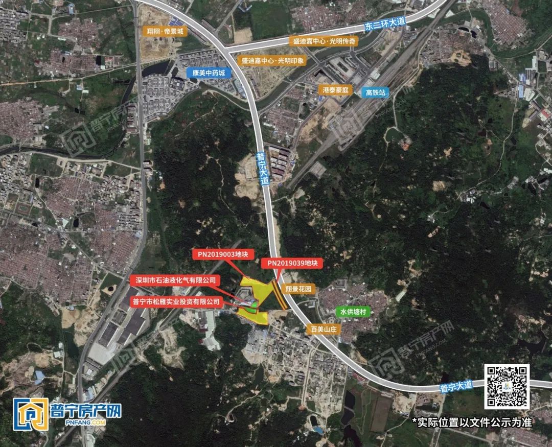规划图可以看出,以上两宗用地与去年已公示的普宁市松雁实业投资有限公司两宗地块(分别是57.40亩、5.13亩)紧密相连,四宗地块合计面积为69.78亩。
