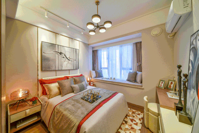 舒适南向主卧,套房设计,配备超宽飘窗及独立卫生间,私享静谧,创造大家庭里幸福的“二人空间”,给予房宅主人尊崇体验。