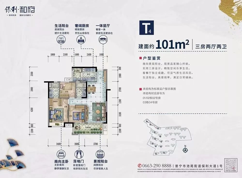 保利和府建面约101㎡实用三房,百变灵动户型,分寸必用,利用率高,南北通透,视野不凡,能够满足多种生活需求,容纳三代同堂的幸福,是刚需置业的首选。