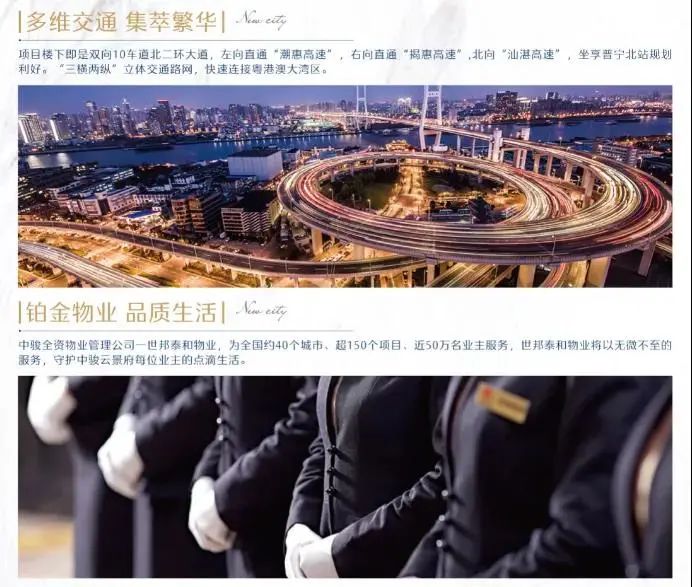 1.推广名:普宁·中骏云景府 开发商:普宁骏合房地产开发有限公司,预售证号:粤(普宁)房开证字第0000056号。本广告文字,图片以及建筑设计效果图是对项目所做的示意表现,仅供参考,最终标准详见政府相关部门批准文件,图则。部分文字或图片转载自网络,无法核实真实出处,如涉及侵权,请致电联系,我们将第一时间删除,谢谢;
