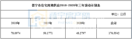 据普宁市国土资源局发布的未来五年普宁市计划供应住宅用地共268.4111公顷(约4026亩),其中前三年计划供应176.5542公顷(约2648亩),2018年计划供应78.0974公顷(约1171亩)。
