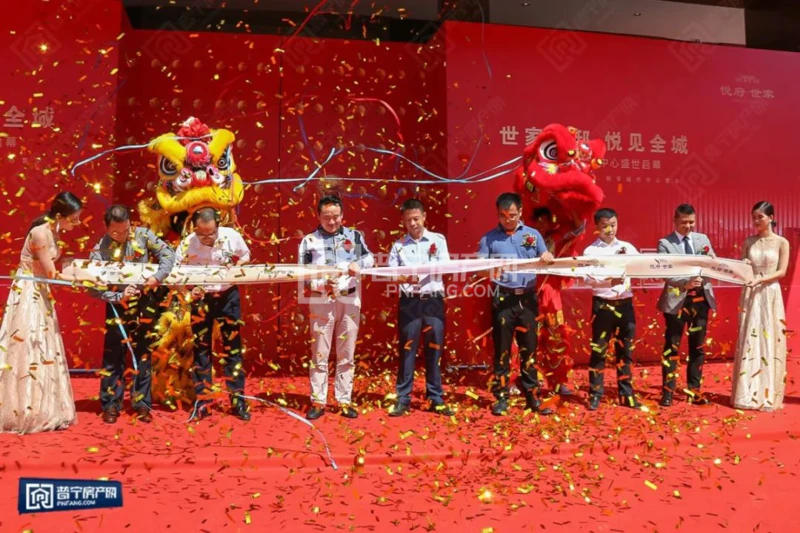 随后在阵阵欢呼的掌声中,进行到了舞狮点睛的环节,被点睛的狮子生龙活虎,象征着吉祥如意,悦府世家红红火火、开盘必定热销。在热闹喜庆的氛围中,迎来了最激动人心的时刻,出席嘉宾和领导共同为悦府世家接待中心剪彩,并推开象征开启的大门,悦府世家接待中心正式开放启用!