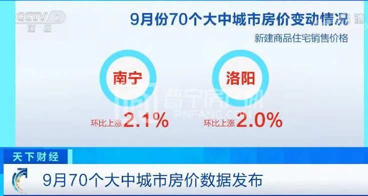 从具体城市看,南宁、洛阳的新建商品住宅销售价格以超过2%的环比涨幅位居70城市前列。