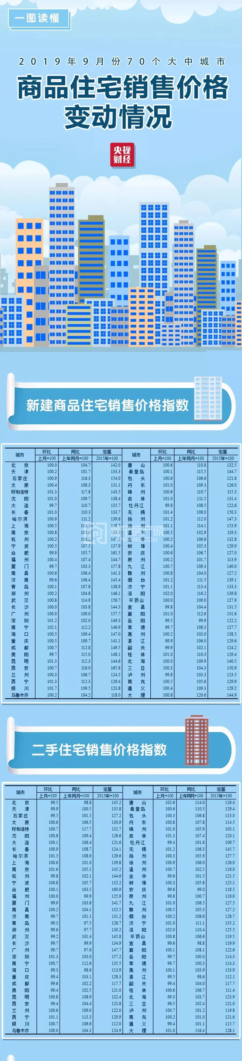 近日,国家统计局发布了2019年9月70个大中城市商品销售住宅的变动情况。