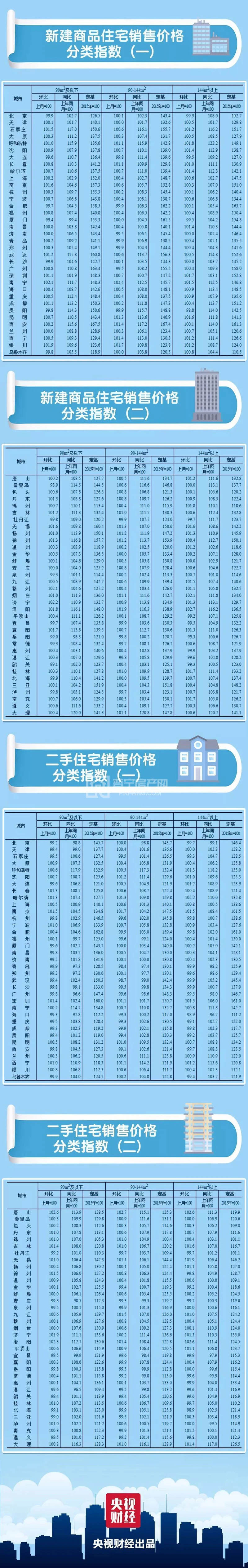 从具体城市表现来看,南宁、洛阳的新建商品住宅销售价格环比涨幅居前(南宁新建商品住宅销售价格环比上涨2.1%, 洛阳上涨2.0%),银川、西宁、昆明、呼和浩特的环比涨幅在1%以上。