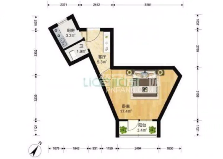 3. 订书机户型:两室一厅一厨一卫一阳光房。厨房之外,别有洞天!